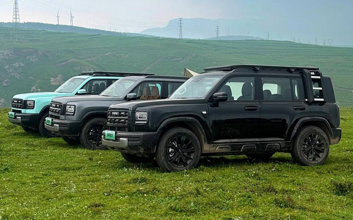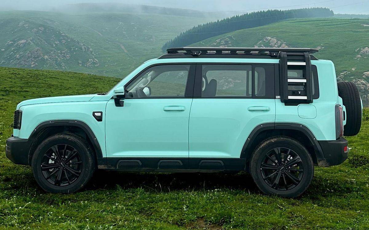 來到側面,整體仍是“方盒子”的造型設計,沒辦法,越野車的魂不能丟。不過,細節上也有調整,就比如說廠家為其增加了寬體熏黑輪眉+鉚釘裝飾,讓人看上去感覺更有肌肉力量感。