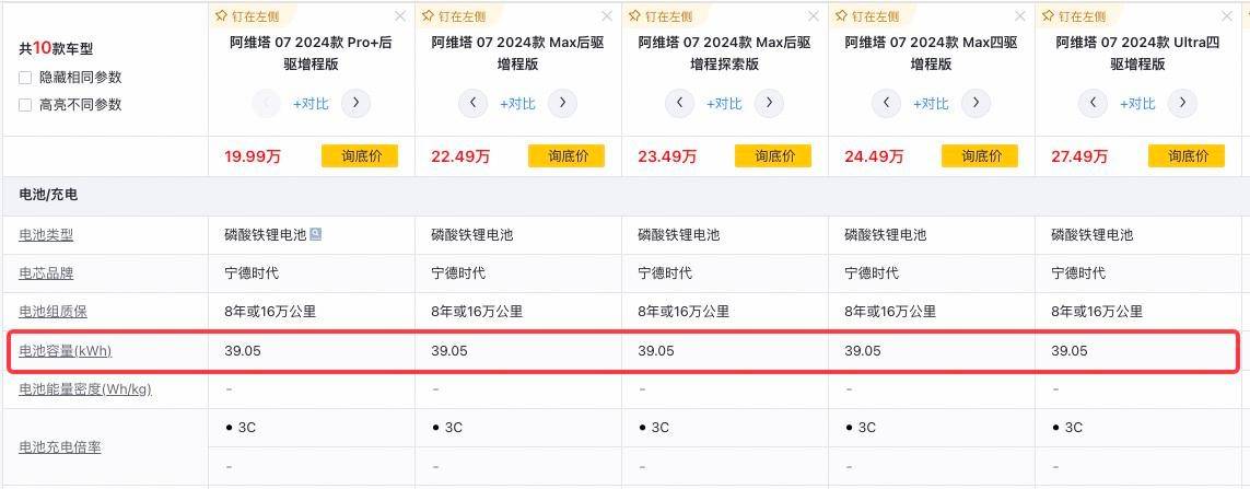 最后是阿維塔12?,F款車型最早于今年5月初上市,其中增程版的CLTC純電續(xù)航里程為245公里(工信部純電續(xù)航里程201公里)。那此次新增容量為52.01千瓦時寧德時代“驍遙超級增混電池”,其工信部工況續(xù)航里程上漲到了266公里,整體續(xù)航里程還是提升了有65公里。
