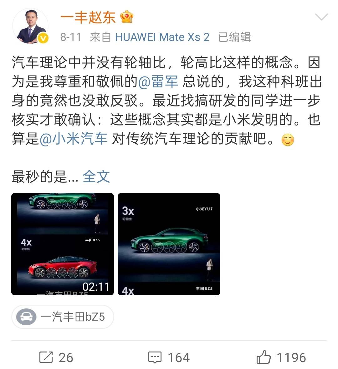 雷軍算錯數(shù)了?一汽豐田高管直指輪軸比謬誤,最美比例并不存在?