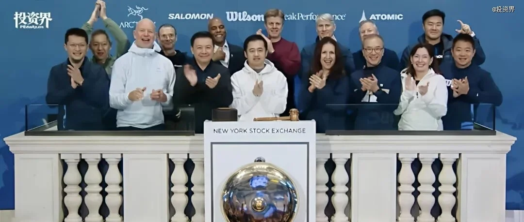 (亞瑪芬敲鐘名場面:安踏掌門人丁世忠C位,方源資本唐葵、騰訊投資李朝暉也在)