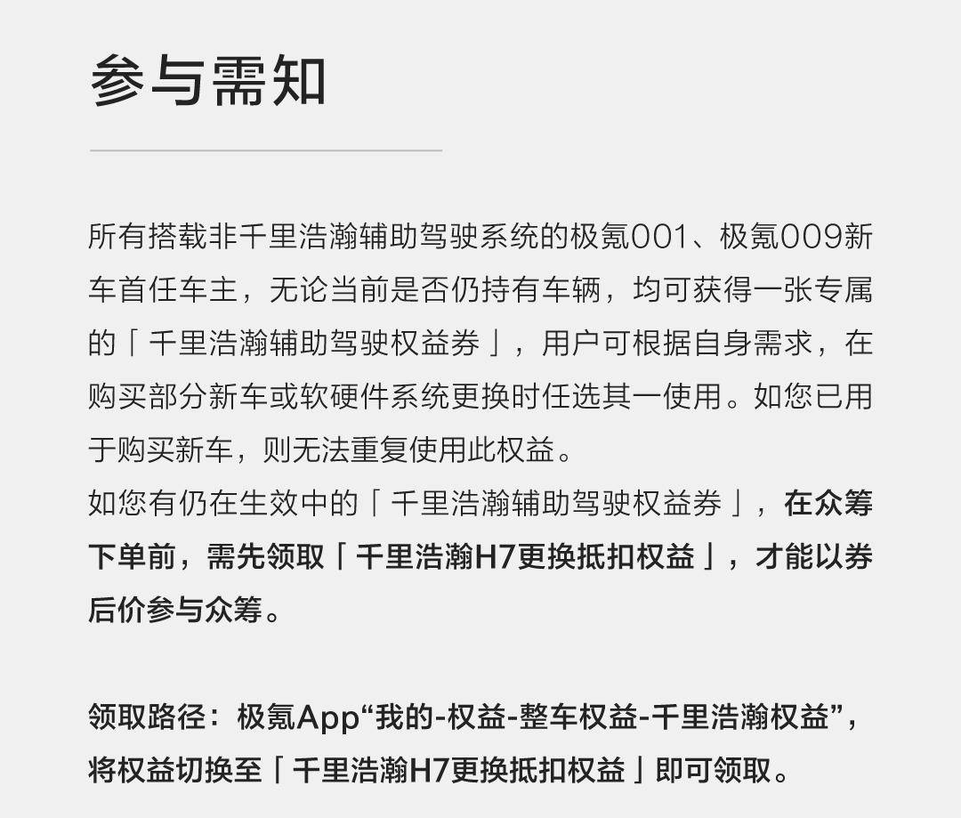 “選擇不升級的車主,也有兩萬塊錢的‘千里浩瀚輔助駕駛權益券’,可以下次更換極氪新車的時候使用。我覺得還是挺良心的。”一名極氪車主告訴《汽車商業評論》。