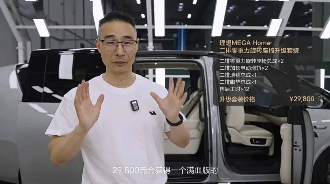 2025年5月,理想宣布了MEGA更換成與MEGA Home一致的零重力旋轉座椅的收費方案,需要更換的配件包括二排零重力座椅(48475元);加長電動滑軌(8885 元);地毯總成(1921 元);腳墊總成(399 元);售后工時(2160 元),合計費用是61840 元,最終給到用戶的價格是29800元。