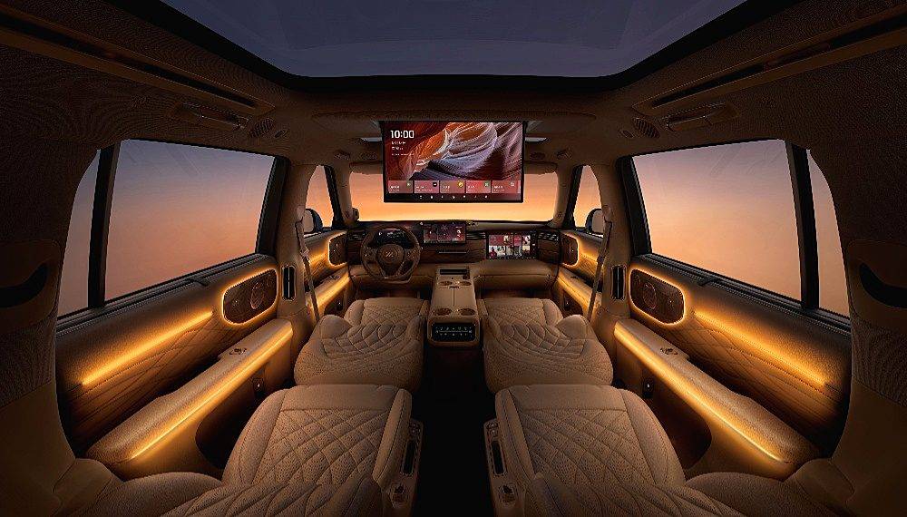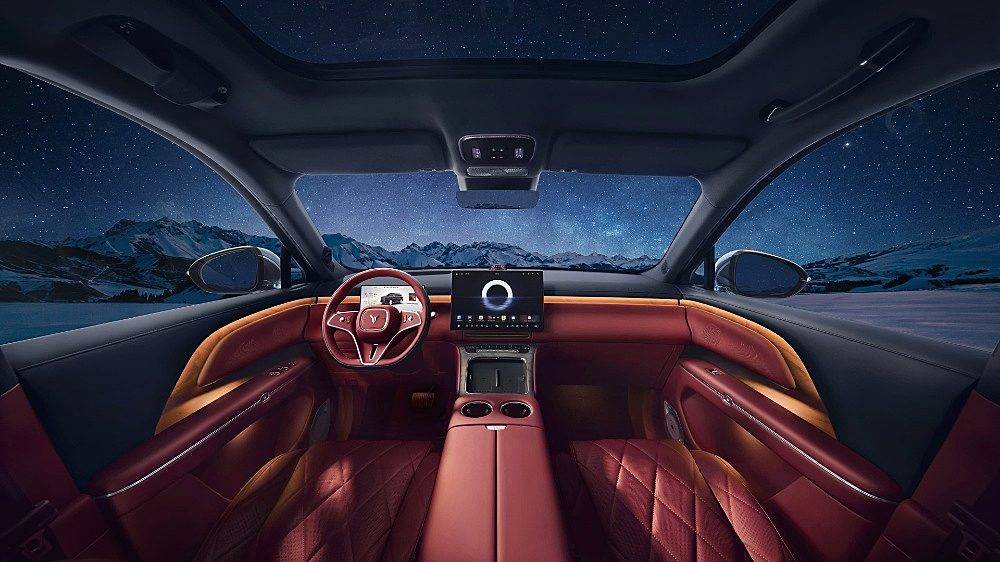 內(nèi)飾方面,嵐圖泰山大量采用了Dinamica仿麂皮材質(zhì)與原生實木飾板,配合256色氛圍燈,營造出的是類似游艇座艙的環(huán)抱式豪華感。