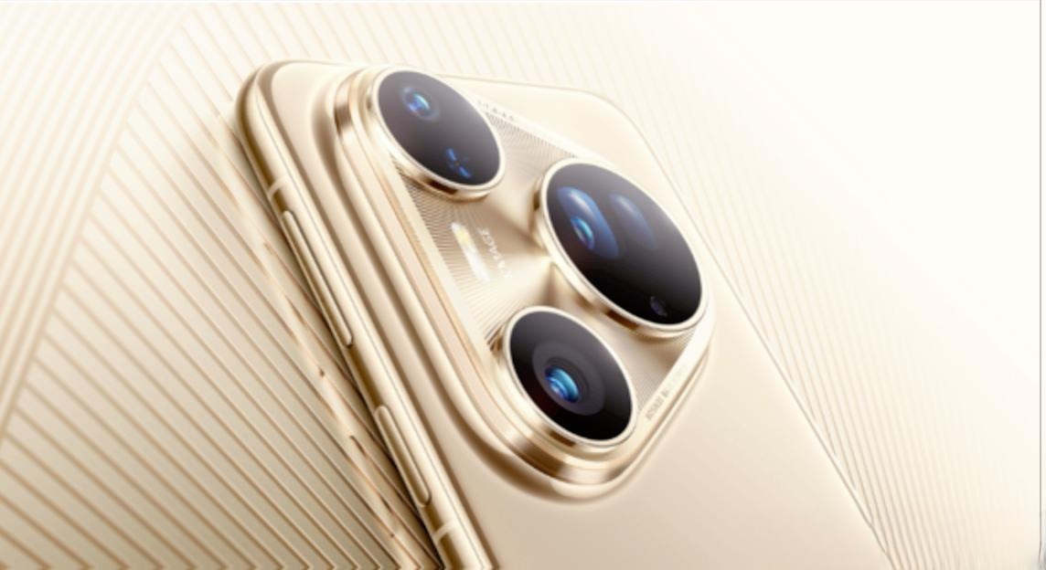 華為手機后置攝像頭模組 · 展示金色華為手機的后置三攝模組細節