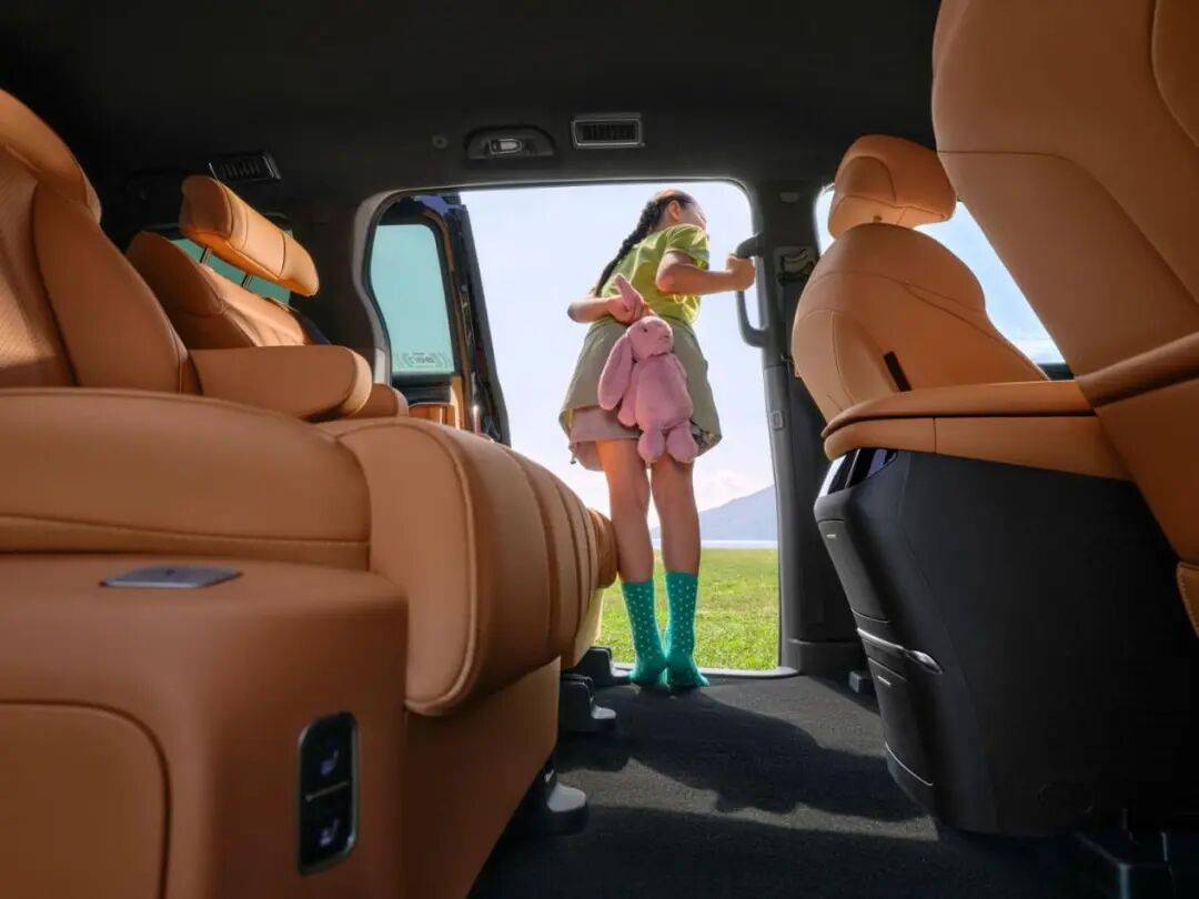 而星海V9則對細節打磨到位:200mm超寬二排中央通道,成年人側身輕松通過,小孩甚至可以直接跑過去。雙側魔術電滑門帶雙重防夾機制,老人上下車時即使動作慢、倚靠車門,系統也能及時感應停止,安全冗余更高。此外,地臺高度經過優化,配合B柱扶手,老人上車不費勁,孩子自己也能爬上去。