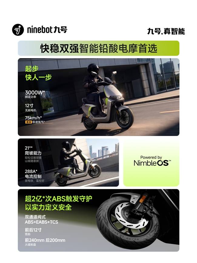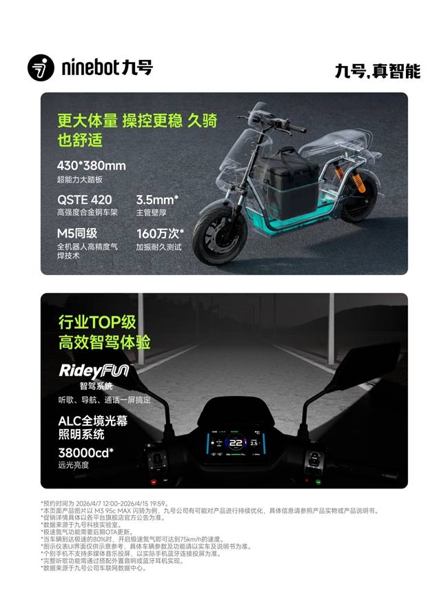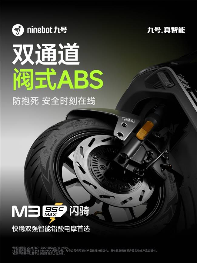 4月14日,九號 M3 95c MAX 閃騎與 M3 85c MAX 閃騎正式上市開售,首發(fā)價分別為6299 元起和4799 元起。作為九號閃騎系列新品,兩款車型圍繞快與穩(wěn)雙重強(qiáng)化,成為同價位的“快穩(wěn)雙強(qiáng)智能鉛酸電摩首選”。