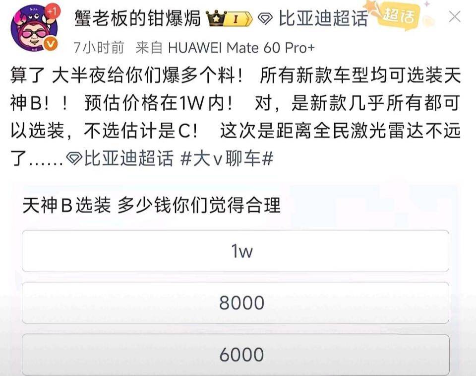 而且隨著工信部信息顯示海鷗提供激光雷達選裝,和一些靠近比亞迪的博主反饋,今年比亞迪新上的車型,可能都會提供天神之眼B的選裝,也就是具備城市NOA的能力。在這種情況下,很多10萬元級別的車型,也將具備20萬以上級別車型才會有的城市NOA能力,加上更長的純電續航表現,這套組合拳的含金量不容小覷。